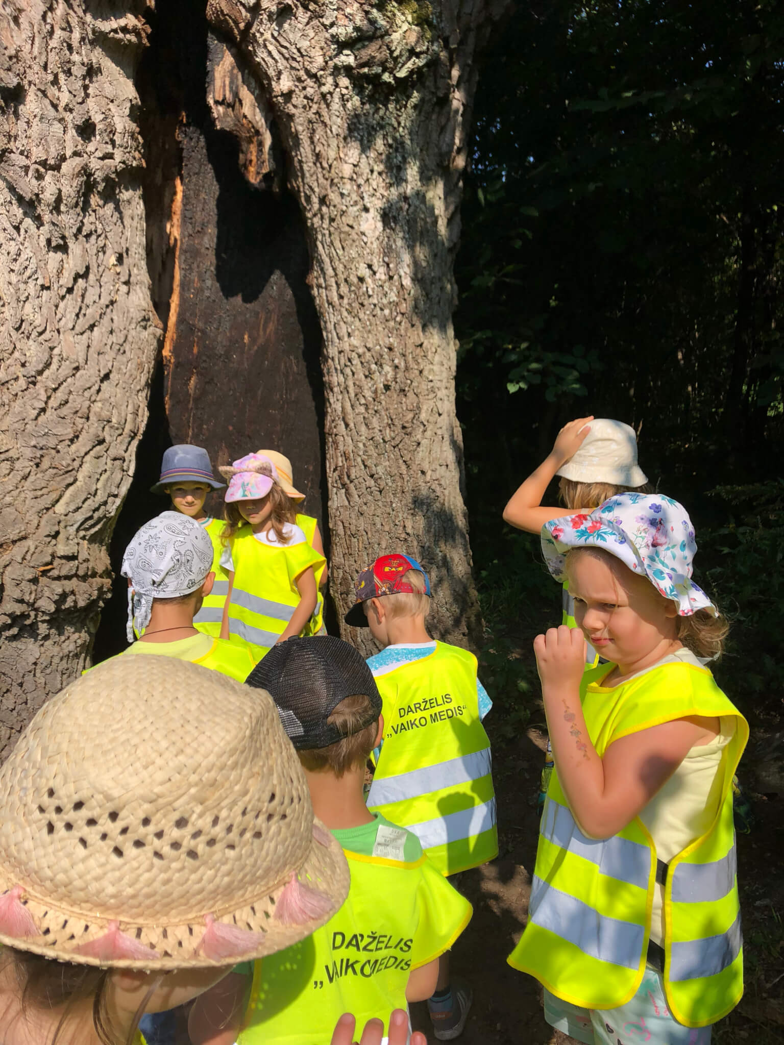 Atsisveikinti su vasara „Žiogelių“ grupė išvyko į ekskursiją, kuri prasidėjo Belmonte. Keliaudami pažintiniu taku, vaikai grožėjosi gamta, stebėjo medžius. Priėję saulės laikrodį, smalsiai apžiūrėjo ir stebėjo, kaip krentantis šešėlis slenka tarp akmenų. Stabtelėjome prie Pučkorių atodangos vaizdų. Daugiausiai įspūdžių vaikams buvo priėjus „Beždžionių“ tiltą, kuriuo pereiti reikėjo drąsos ir ryžto, ypač žengiant pirmuosius žingsnius 🙂